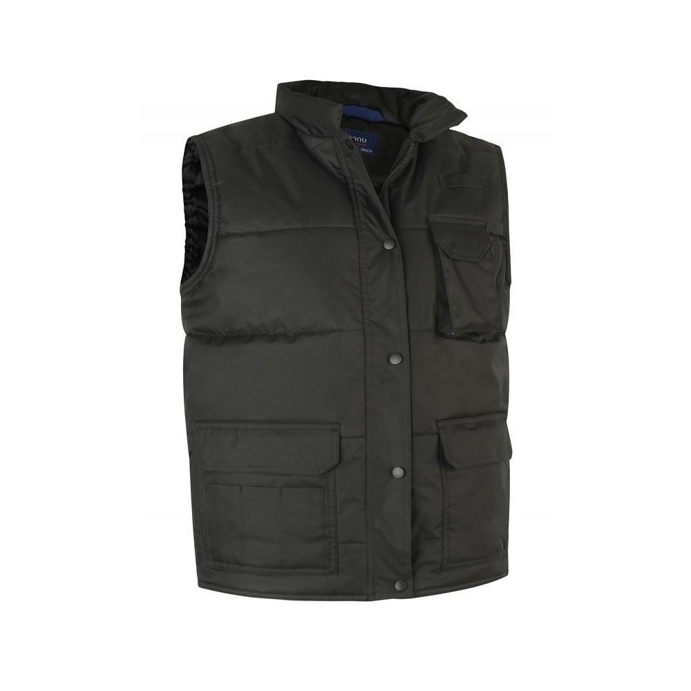 Le gilet UNEEK en polyester hydrofuge, au style moderne, comporte une fermeture à glissière avec rabat à boutons-pression. Il est équipé d'une doublure isolante, de poches avant sécurisées, d'une boucle radio, de 2 emplacements pour stylos, d'une poche intérieure avec accès broderie, et d'une poche pour téléphone. Pratique et fonctionnel.