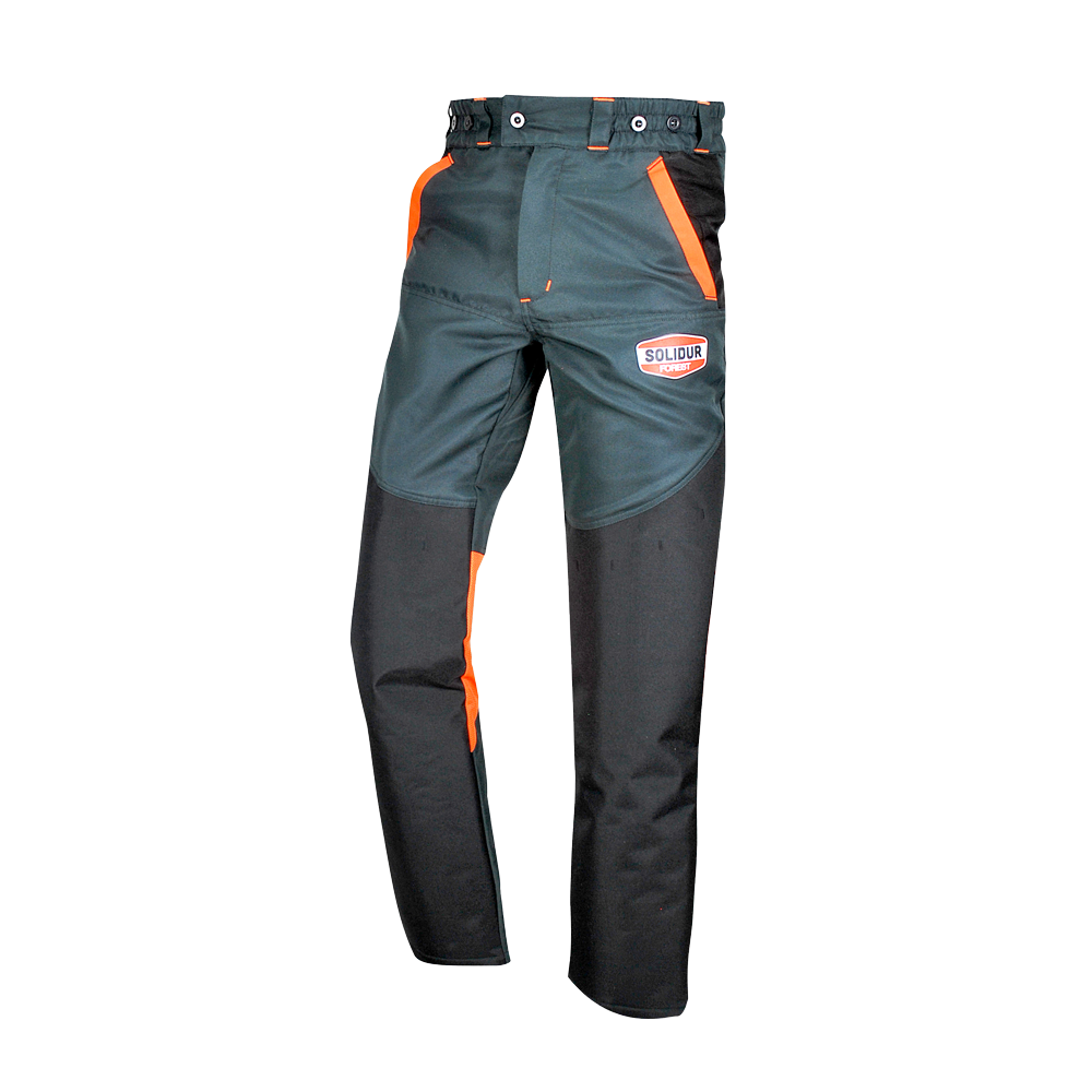 Pantalon de protection pour le débroussaillage avec un renfort en mousse haute densité de 5 mm sur les tibias.