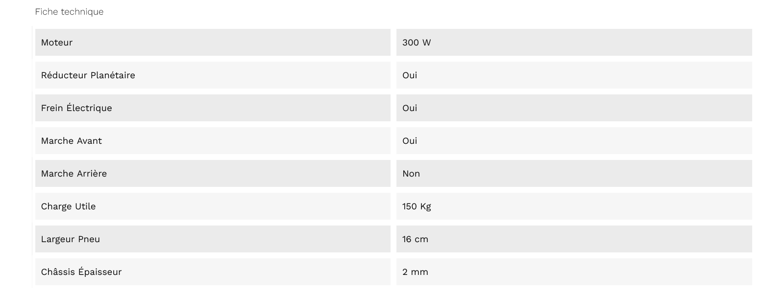 - Réducteur planétaire avec roulements à billes étanches sur tous les axes Batterie Panasonic (AGM) 12 V 22 A (450 cycles de charge)