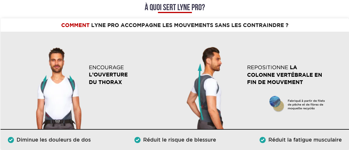 • Lyne Pro n'empêche pas les mouvements et n'a aucune contre-indication.