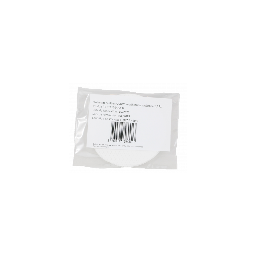 Lot de filtres remplaçables désinfectables et réutilisables pour le masque réutilisable OCOV® PR16020