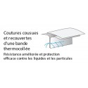 - Coutures cousues et recouvertes d’une bande thermocollée.