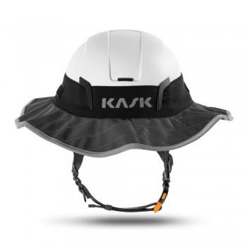 Le Sombrero de Kask est un "bord de chapeau" pour le casque de travail Kask et est excellent pour être fixé aux supports de lampe frontale. Le parasol est certifié conforme à la norme AS/NZ 4399:2017 et protège la tête et les épaules des rayons UV nocifs. Le dessous du sombrero reste noir pour éviter les reflets gênants de la lumière.