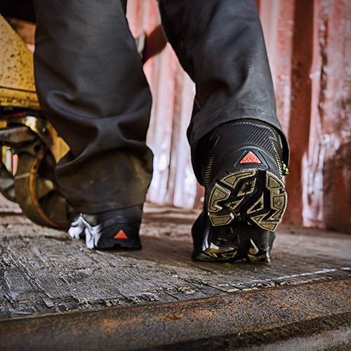 | Résistantes et extrêmement durables, les semelles sont en caoutchouc MACSOLE®. Elles sont extrêmement polyvalentes et adaptées aux professionnels du bâtiment et des travaux publics, de l’énergie et de l’environnement, des transports, de la chimie, de l'industrie ou encore des espaces verts. | La formulation de notre caoutchouc spécial MACSOLE® permet d'offrir une excellente adhérence très supérieure aux exigences de la norme EN 13287. | Selon le test de la résistance à la flexion de la chaussure définie par la norme EN ISO 20344 : 8, les performances de la semelle ne souffrent d’aucune détérioration au fil des utilisations. |