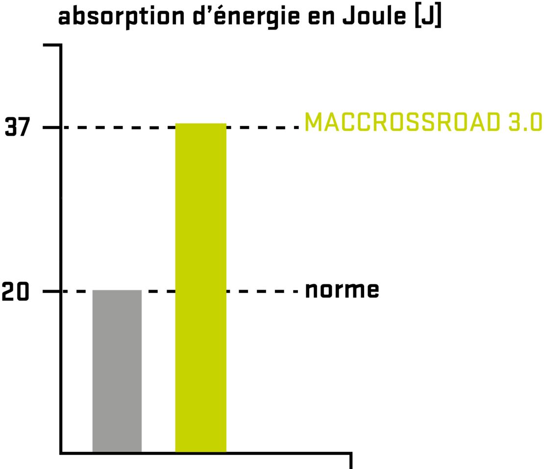 Dotés de la dernière technologie MACABSORB, elles offrent, en outre, une absorption des chocs de + de 85% supérieure aux exigences de la norme pour un confort durable sur tous les terrains.
