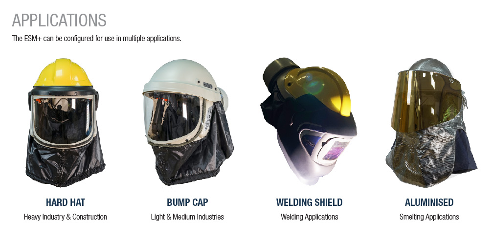 Caractéristiques | - L'ESM+ PF23 est un masque purificateur d'air modulaire, autonome et intrinsèquement sûr, conçu pour l'industrie légère, notamment les industries pharmaceutique, chimique, de laboratoire et de santé. ESM+ PF23 est approuvé pour une utilisation dans certains types d'environnements gazeux et poussiéreux où existent des atmosphères potentiellement explosives. Sa conception modulaire lui permet d'être configuré pour correspondre exactement à l'application requise.