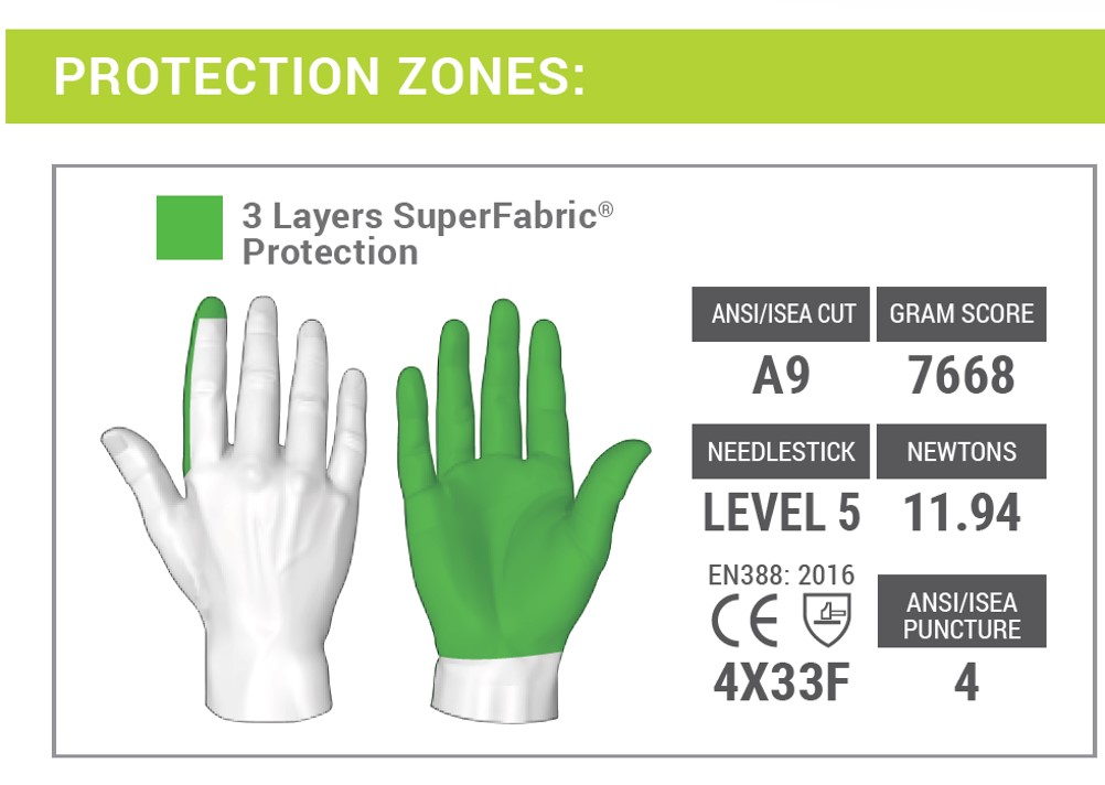 Caractéristiques de protection | - niveau de protection 4X33F certifié selon la norme EN 388:2016