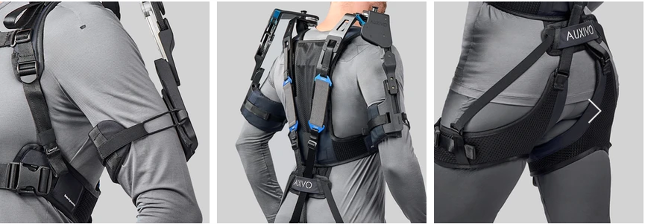 - Le premier exosquelette entièrement intégré offre un support multitâche utilisé pour les travaux aériens et les opérations de levage.