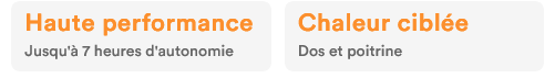 Chaleur | 3 zones de chauffe : 2 sur les pectoraux et 1 au centre du dos
