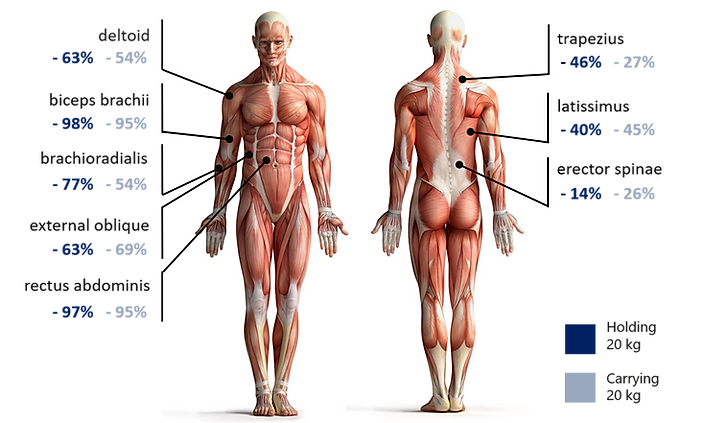 - Amélioration des performances physiques : Des études mesurant la fréquence cardiaque et l’activité musculaire montrent que le CarrySuit réduit de manière significative l’effort physique requis pour manipuler des charges lourdes.