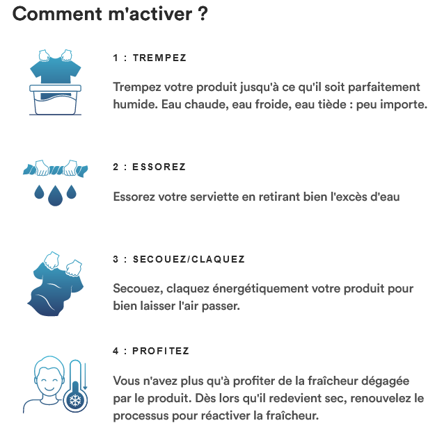Fraicheur | - Facile à utiliser : trempez, essorez et profitez instantanément de la sensation de fraîcheur.